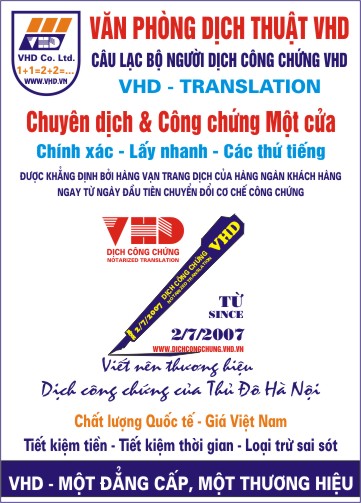 Dịch thuật công chứng VHD - Uy tín chất lượng, chính xác lấy ngay, dịch nhanh giá tốt - Dịch tiếng Anh, Đức, Pháp, Nhật, Trung, Hàn,...