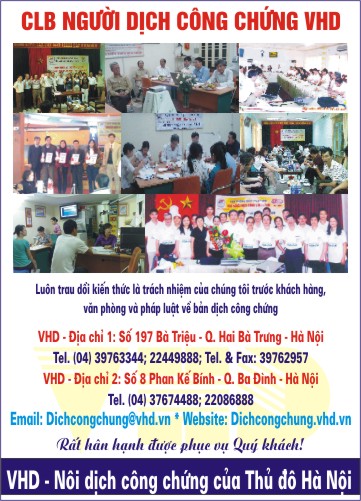 Dịch thuật công chứng VHD 294A Bà Triệu Hà Nội dịch tiếng anh giá rẻ